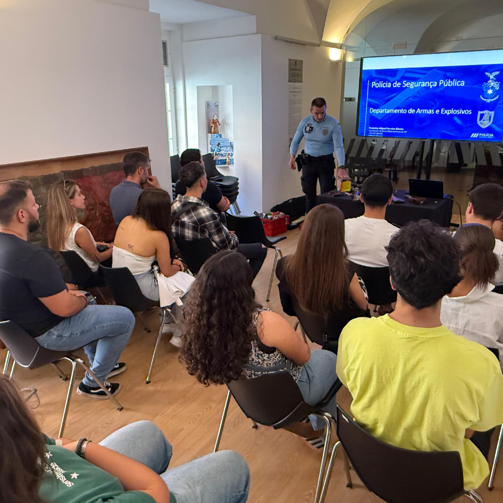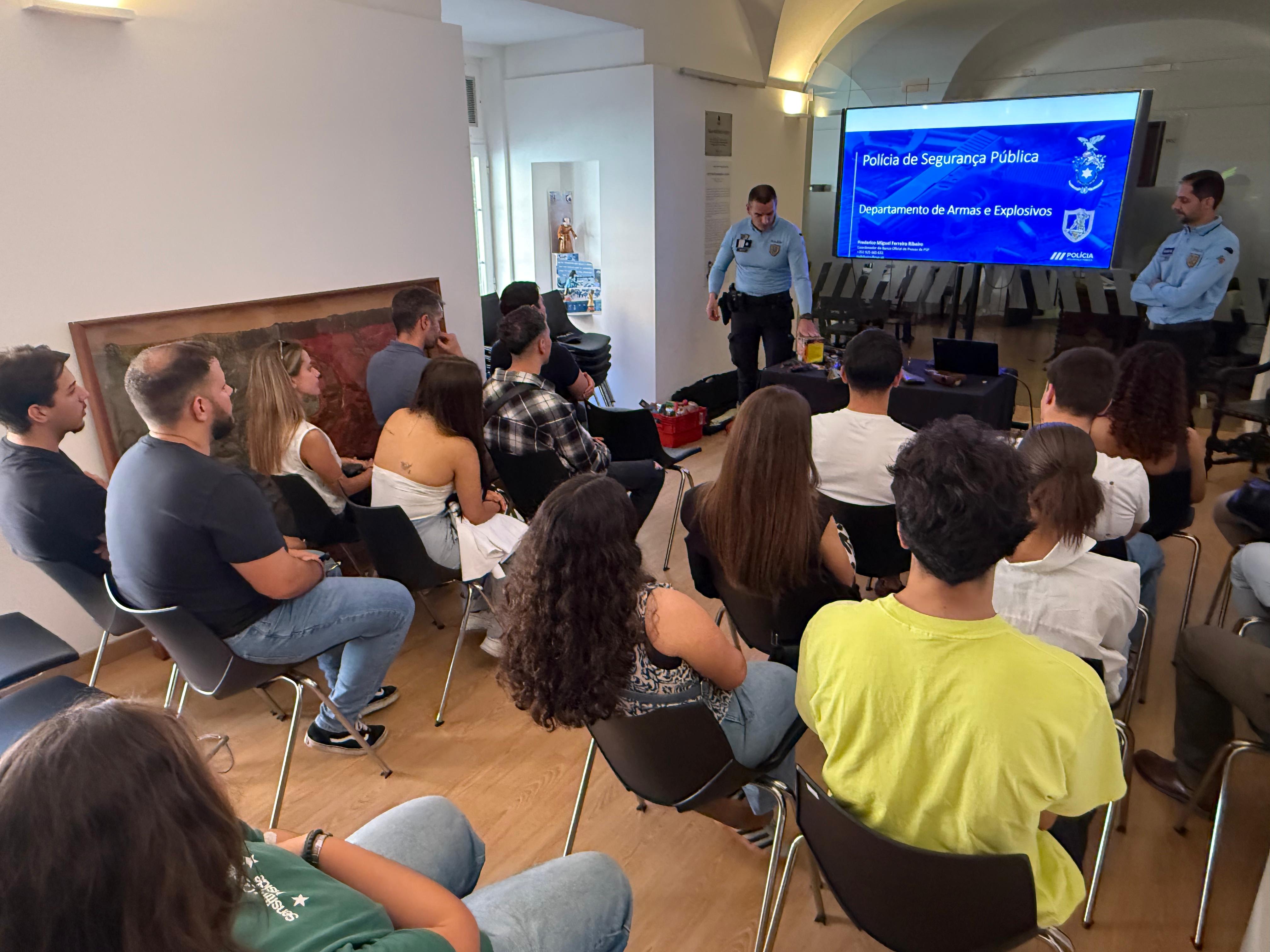 O grupo, que foi acompanhado pelo Diretor da Licenciatura, Prof. Doutor Sérgio Vieira da Silva, e pelo Prof. Doutor Eduardo Pereira Correia, foi recebido pela Diretora do Museu, Mestre Michele Soares, e pela Arquivista, Dra. Cláudia Filipe, tendo tido oportunidade de assistir a uma apresentação do Departamento de Armas e Explosivos da Polícia de Segurança Pública, realizada pelo Comissário Frederico Ribeiro e pelo Chefe Moreira.