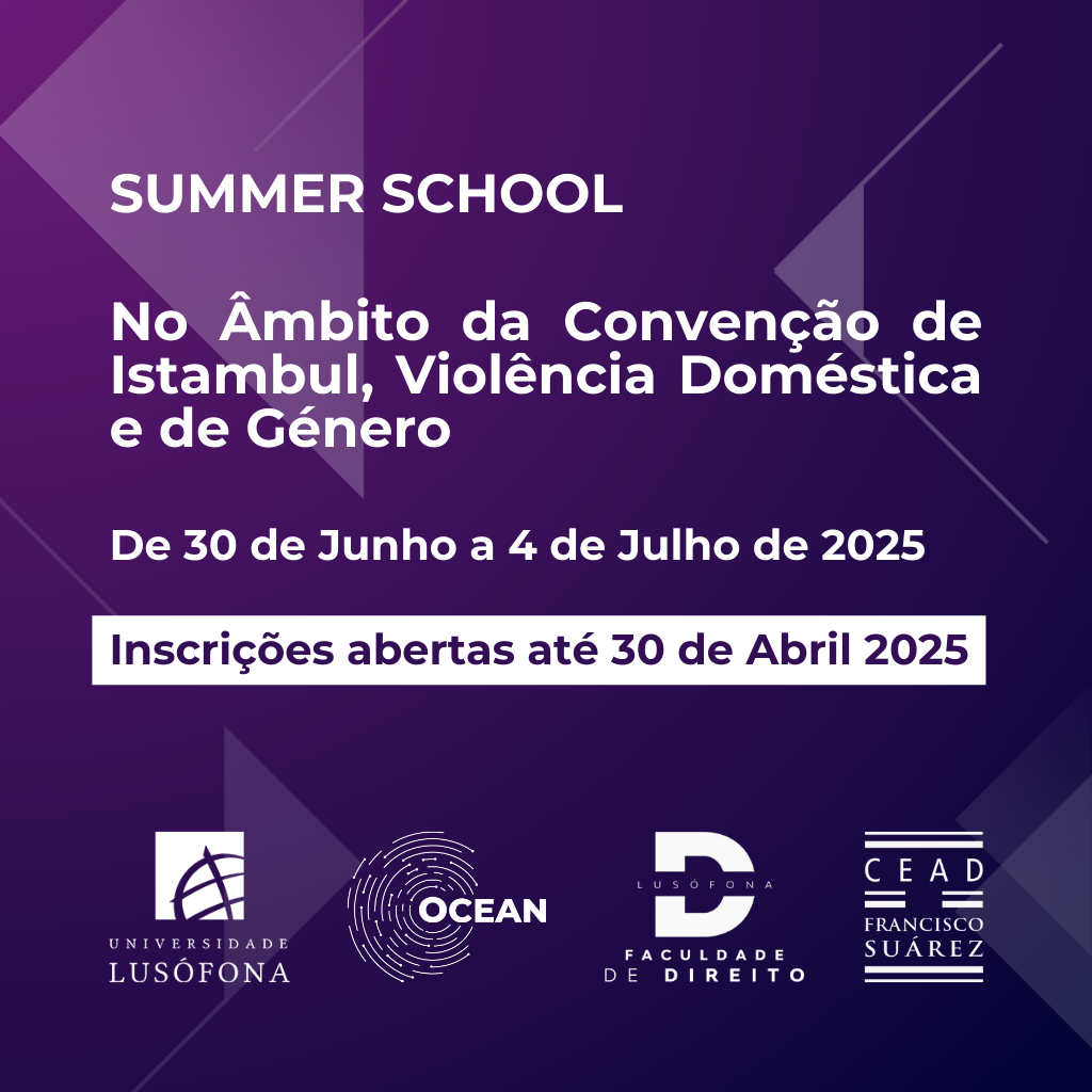 No âmbito da parceria firmada entre a Universidade Lusófona e o OCEAN - Open Council of Europe Academic Network, divulgamos a SUMMER SCHOOL no âmbito da Convenção de Istambul, Violência Doméstica e de Género que está a ser organizada pelo OCEAN e a Faculdade de Direito da Universidade de Estrasburgo, em França, a que terá lugar nos dias 30 de Junho a 4 de Julho de 2025, com inscrições abertas até 30 de Abril 2025.