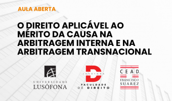 Anunciamos a realização da Aula Aberta intitulada "O Direito aplicável ao mérito da causa na arbitragem interna e na arbitragem transnacional", que terá lugar no próximo dia 5 de maio, na Sala do Tribunal, com início às 11h00.